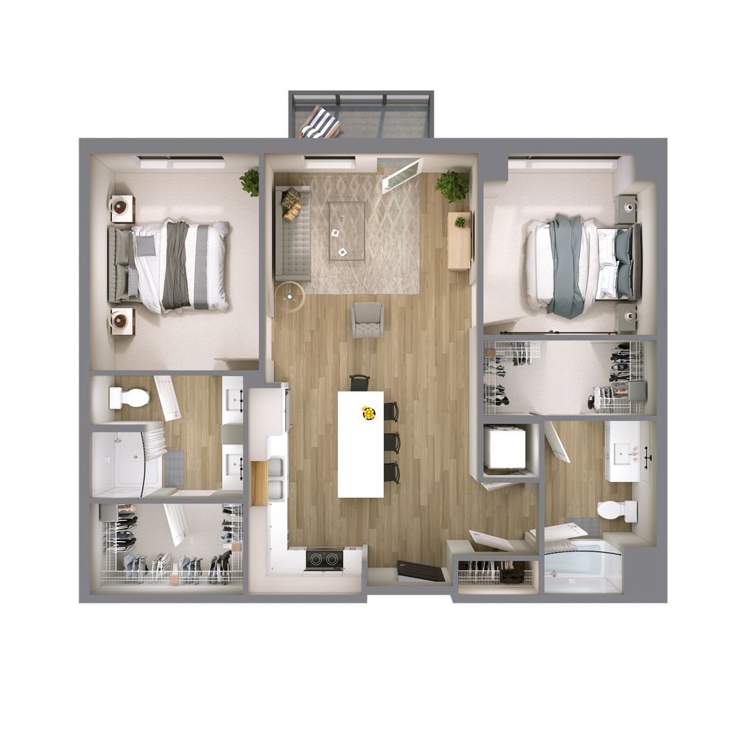 Each apartment home is filled with natural light, open-concept kitchens, an in-home washer and dryer, and upgraded modern finishes.